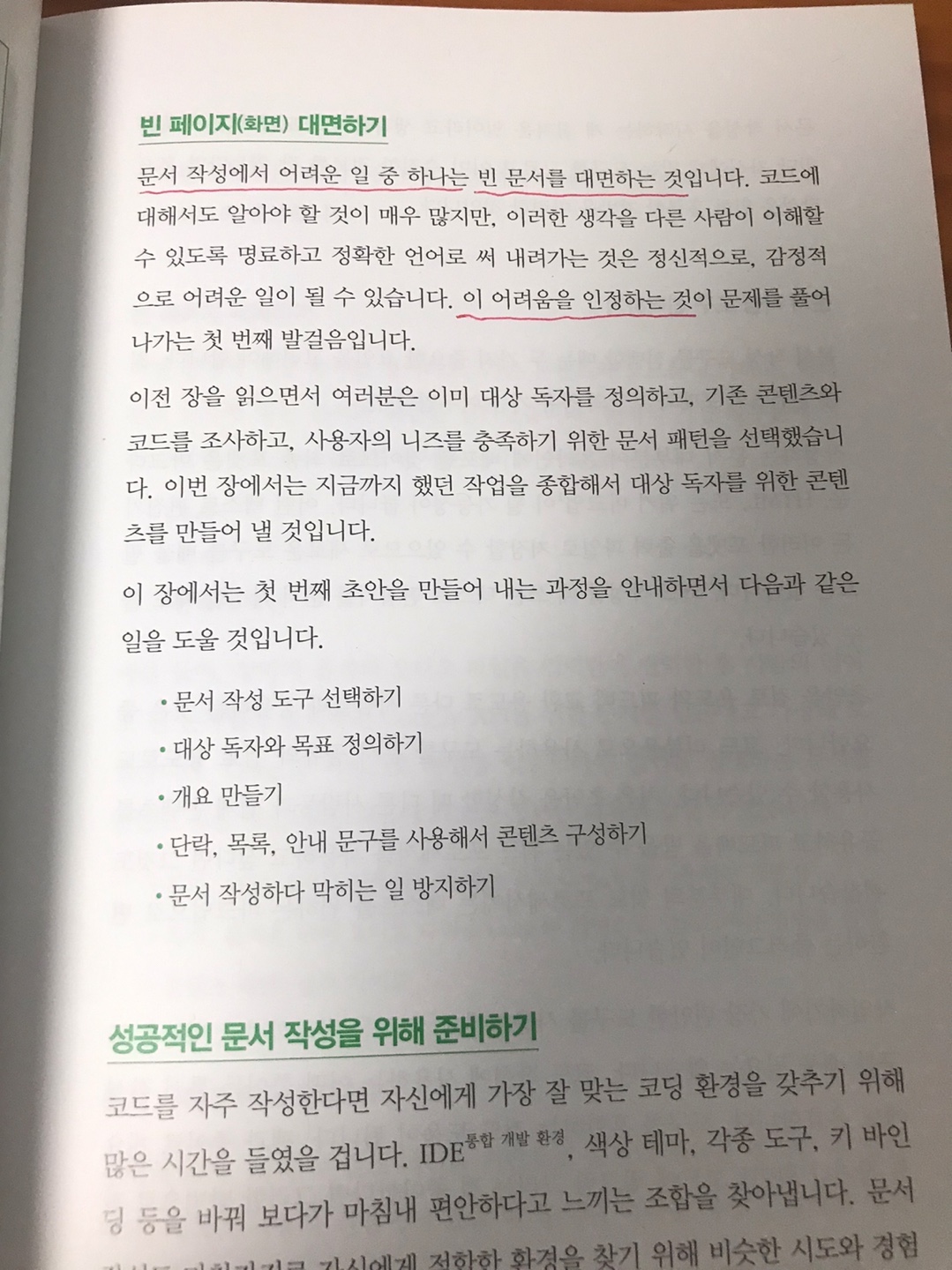 '문서 작성에서 어려운 일 중 하나는 빈 문서를 대면하는 것입니다. ...(중략) 이 어려움을 인정하는 것이 문제를 풀어나가는 첫 번째 걸음입니다'