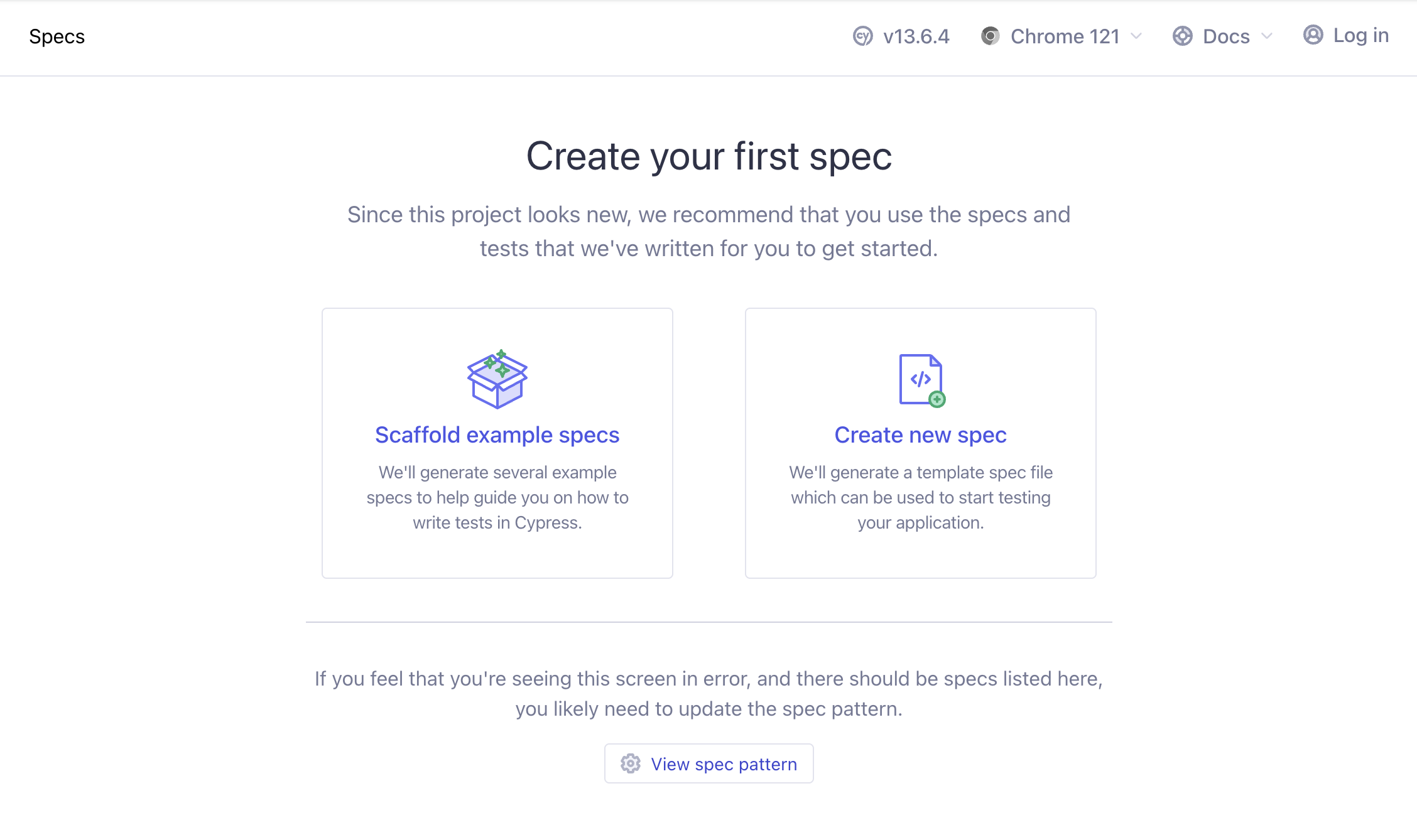 Start E2E Testing in Chrome 버튼을 클릭해주세요.